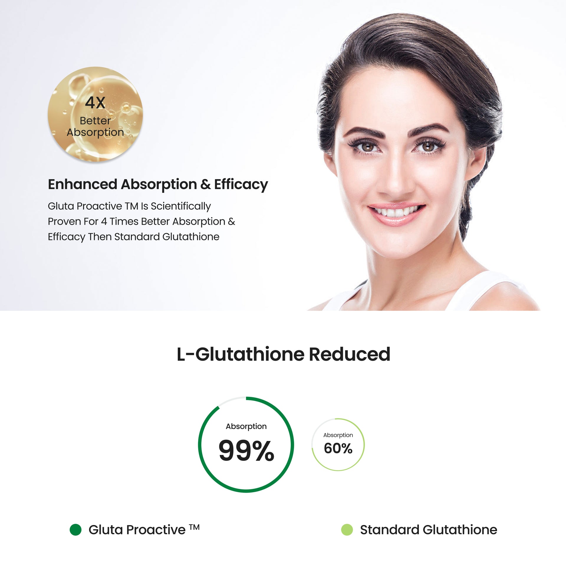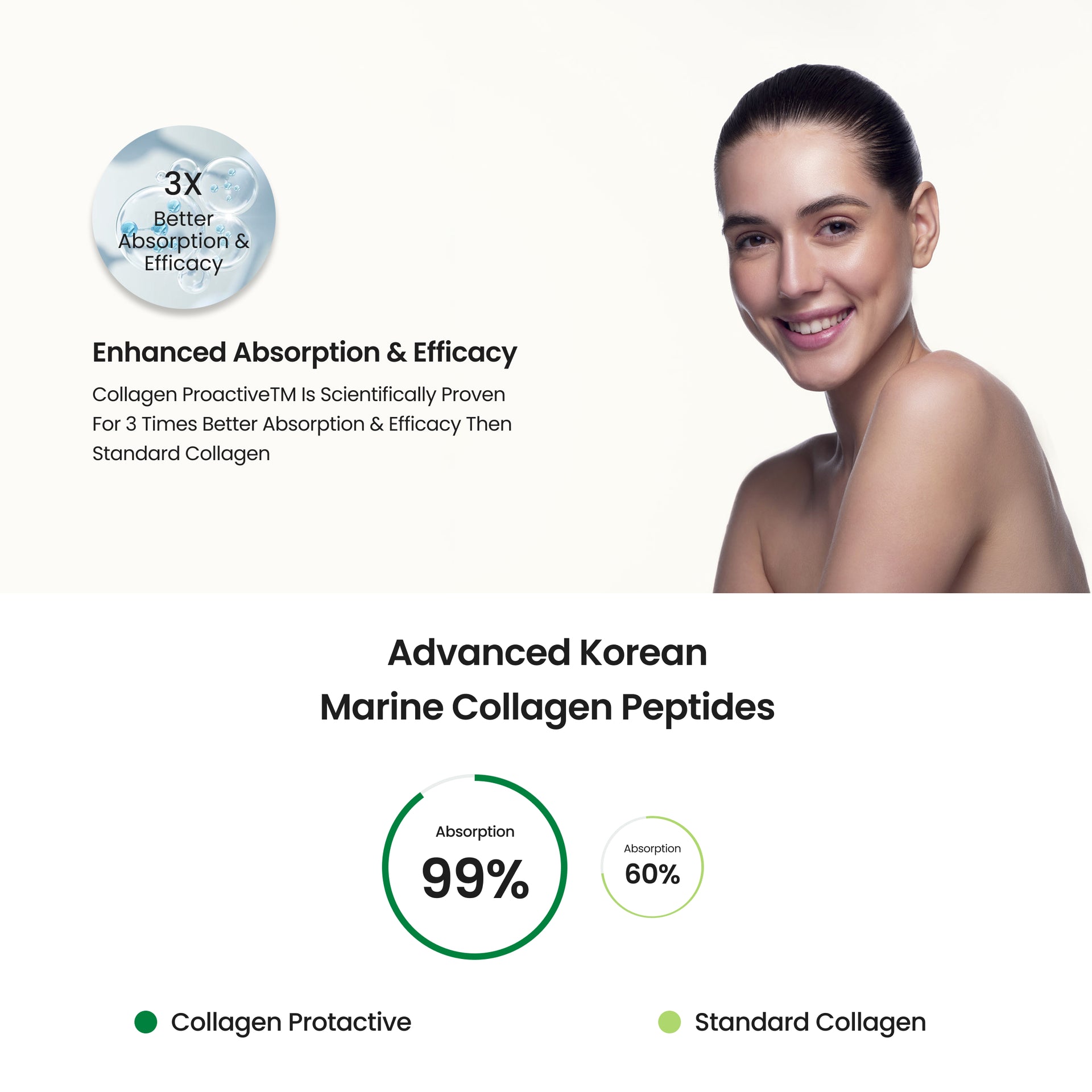 Achieve Radiant, Healthy and even toned skin with our Advanced formula packed with our potent proprietary ingredient Gluta Proactive TM (L-Glutathione Reduced) which provides better absorption of nutrients and high efficiency to eliminate free radicals and reduce brown melanin production for natural glow. Our Advanced Korean Marine Collagen Peptides (Collagen Proactive TM) combines hydrolyzed collagen peptides that are easily absorbed, delivering essential amino acids to boost your body’s natural collagen production. This process enhances skin elasticity and reduces wrinkles while stimulating hyaluronic acid production for deep hydration and a plump complexion. Infused with vitamins C and E, along with biotin, our formula nourishes hair follicles for stronger, healthier hair. Our Proprietary UV-Protection formula (UV Proactive) combines Pine Bark Extract & Polypodium Leucotomos Extract that are scientifically proven to protect your skin from sun exposure and prevents your skin from sun damage. It also helps to balance Vitamin C in your skin and helps to prevent excess melanin production which provide you even toned and glowing skin.